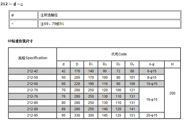 212型單端面、多彈簧、部分平衡型、四氟波紋管機械密封,可與搪玻璃、不銹鋼等反應(yīng)釜配套使用,配有帶冷卻水套的輔助支承。目前使用的有69標、79標及91標,其安裝尺寸分別與相應(yīng)標準一致,選型與訂貨時請按如下方法標注: